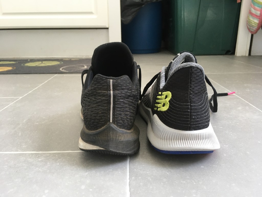 Tongue – This is simply the part of the shoe that protects your foot from the laces. So many wouldn’t give a whole lot of time to choosing a shoe based on this. However, I’ve found I have a problem with a few types of tongue in the shoes that I own. Having wider feet makes finding shoes the right size a little bit harder anyway, so at the National Running Shoe in January 2020 I took the chance to get my feet measured and shoes recommended by an independent retailer. The programme recommend a bunch of shoes for my feet and I trustingly ordered ones that gave me a 91% match, from a brand I’d never worn. When they came I found that the tongue in the shoes doesn’t move. It’s attached on both sides, making it a tight ‘gusseted’ tongue, but more importantly making it really hard for me to put onto my foot. This experience makes me a little nervous about making a similar mistake again, as I can now not wear these shoes (along with a few other reasons) for running. It is actually a little bit painful when trying to put these on, so I’ve just opted not to. The reason behind the tongue of shoes being connected at both sides is to help keep out debris from the foot, and help the shoe conform and fit the foot a bit better. There is also a burrito tongue, where the tongue is attached on one side. My current running shoes would also be classed as a gusseted tongue. However instead of attaching to the main body of the shoe they attach to a slightly elasticated inside. From my research of new running shoes online, it’s actually really hard to tell what attachment the brands have done for the tongue of different shoes. You can make a best guess, but many brands neglect to show this information, so will only be something you can find from trying them on.